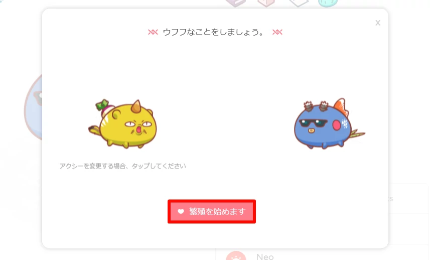 选择好第一个后,点击以线条勾勒出的Axie形状,选择另一个繁殖蓝本。