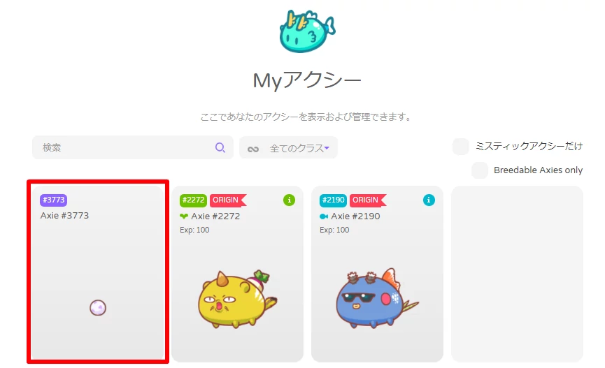市场拥有检索功能。可便利地找到自己想要的Axie。
