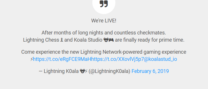 直到最近,随着Koala工作室宣布其游戏平台和国际象棋游戏已经“准备好迎接黄金时代”。虽然比特币游戏不为大众熟知,但闪电网络的推出让用户可以将其更多地应用于游戏。