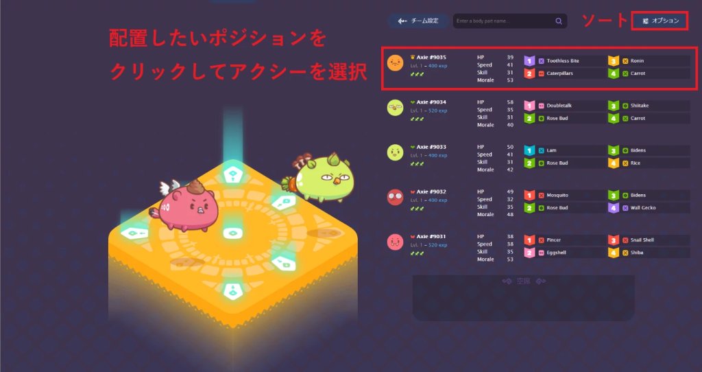 选择以后,需要对Axie的站位进行配置。