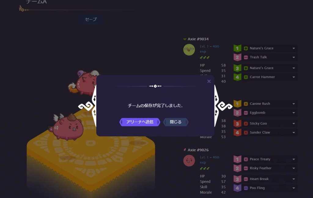 这个时候,如果点击Axie的一项技能,还能够显示出战斗时的指令列表。推荐您在此事先查看,变更。