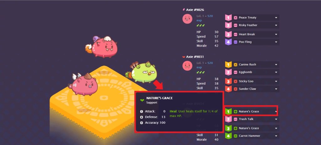 *如果Axie的速度太快,则不推荐将恢复技能放在首回合使用。
