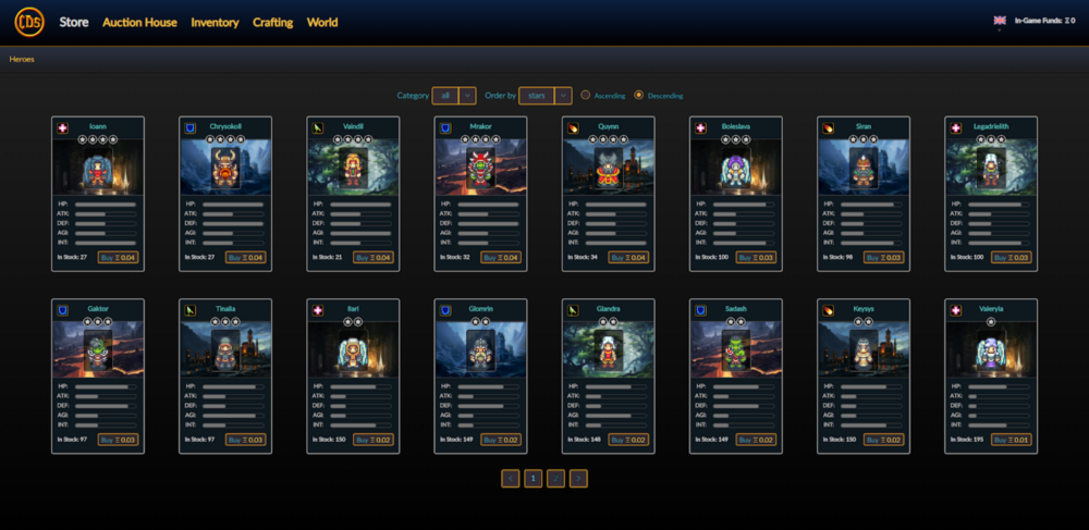 每个职业最多可以使用五种特殊能力。例如,战士拥有普通攻击、重击、击盾、护盾墙和呐喊能力。英雄是NFT令牌,可以通过官方游戏商店购买。