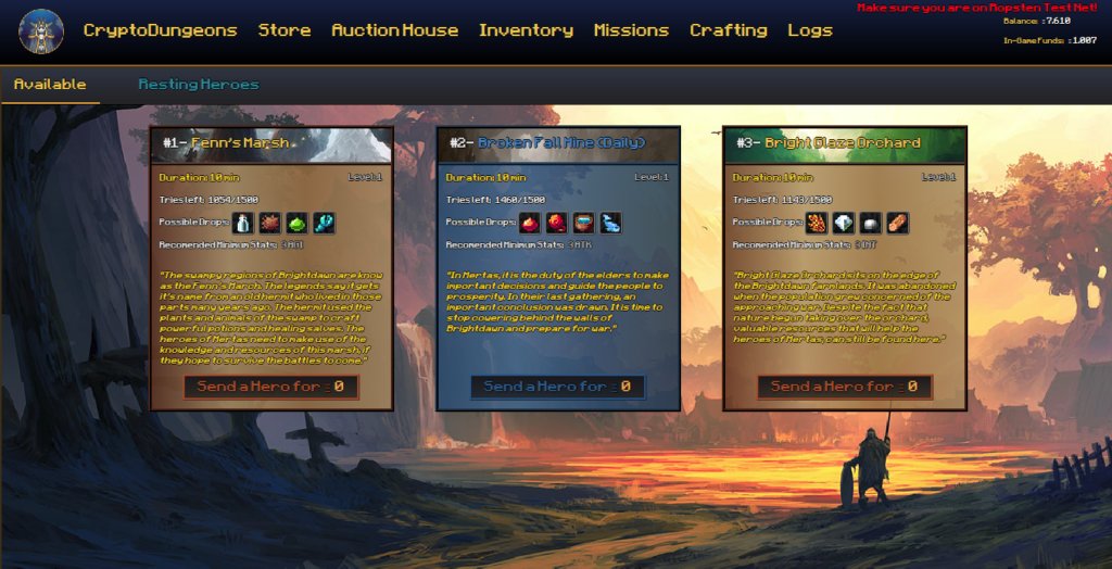 在《CryptoDungeons》中,玩家可以通过收集资源来完成各种任务并制作物品,从战略上选择他们的英雄来克服最困难的挑战。