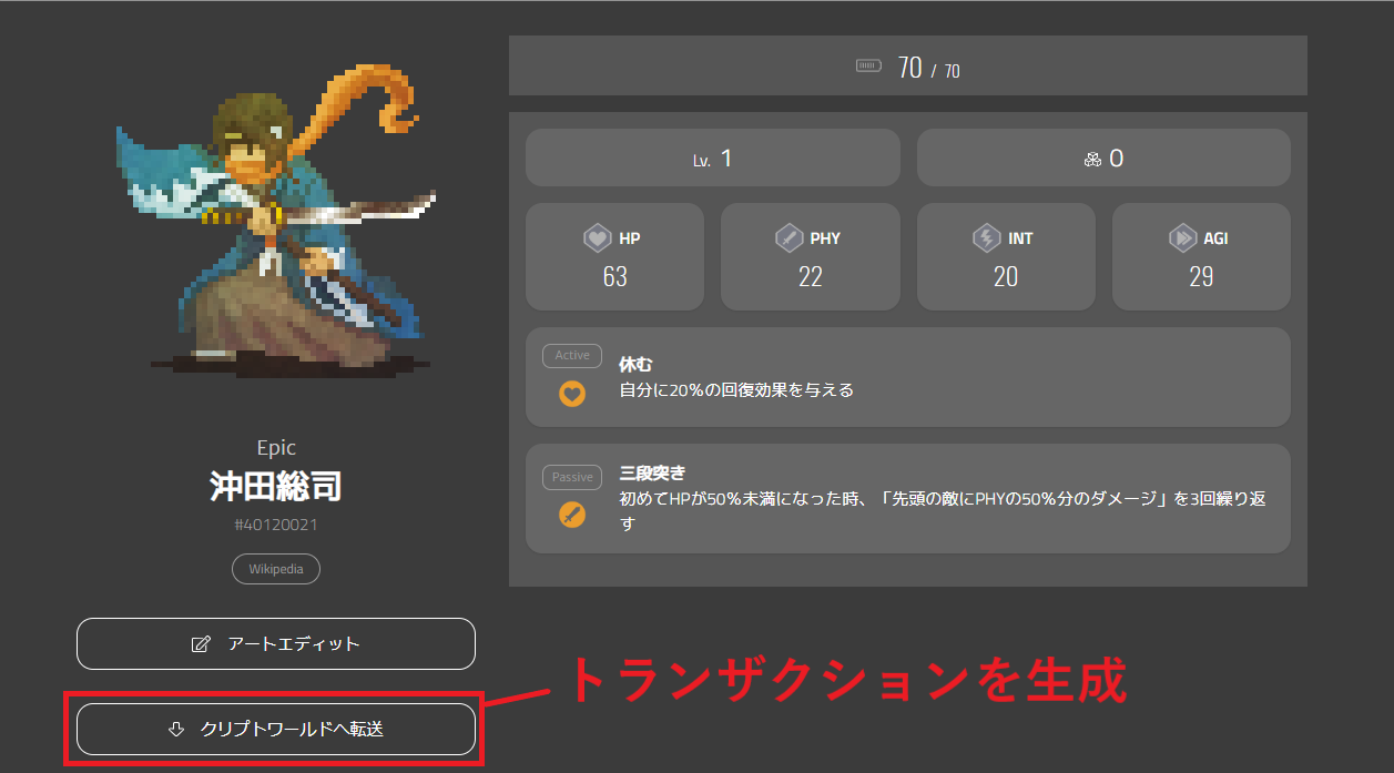 选择想要传送的英雄,打开如上图的画面,点击‘クリプトワールドへ伝送’后,即可完成传送。