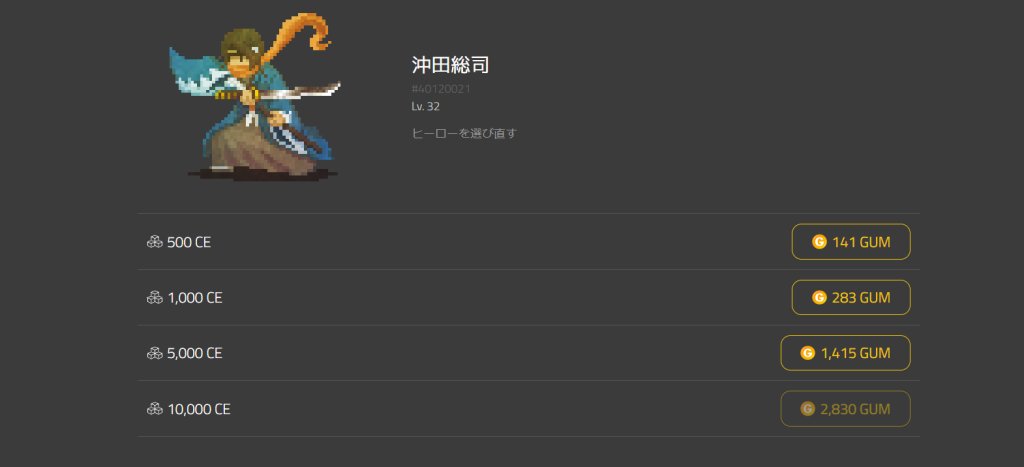 购买经验值,升级指定英雄时,首先需要选择英雄,选择想要购买的经验值量,再支付GUM以购买经验,使英雄得到强化。