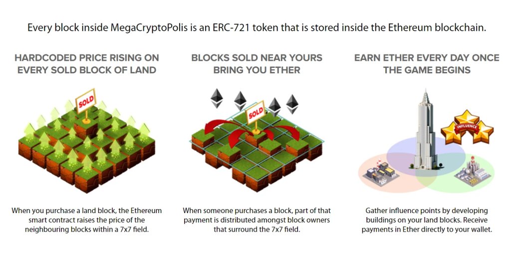 这个游戏产生的交易量在区块链游戏中名列前茅。通过购入土地,建造建筑的方式来提高其附加价值,并以此赚取收益。