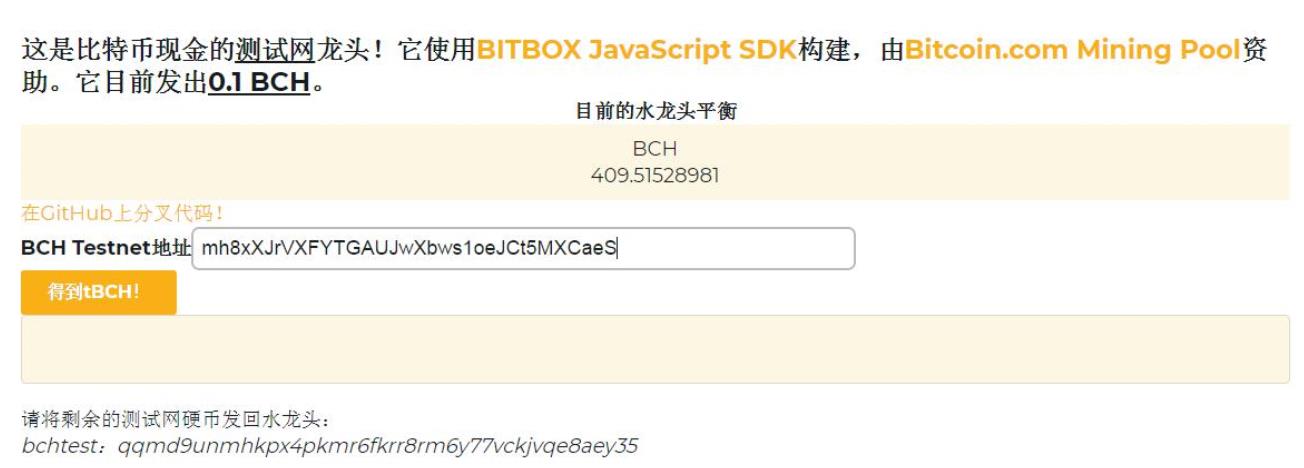 测试网水龙头:https://developer.bitcoin.com/faucets/bch