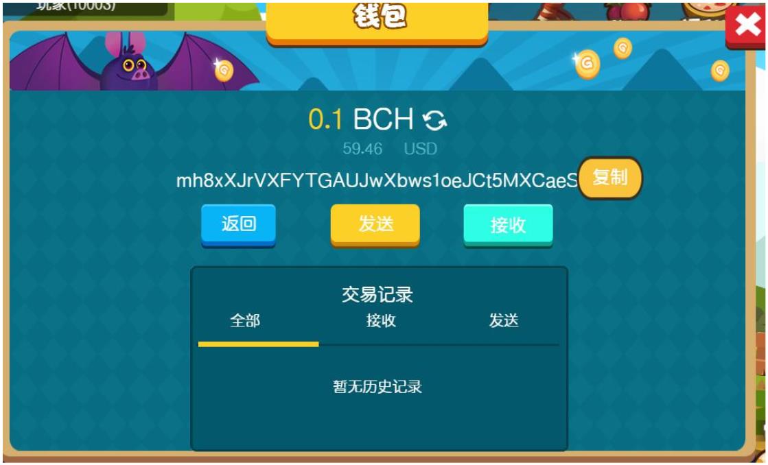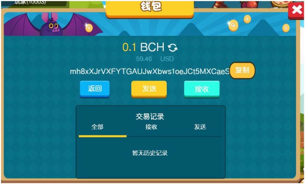 在游戏主页面的中间找到钱包按钮,如果您之前未曾拥有 BCH 的钱包可以