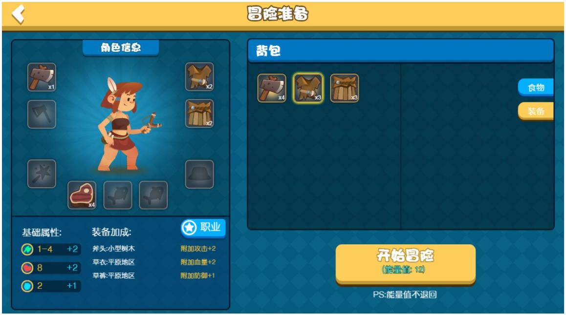 2.2 冒险准备,选择装备的食物、装备,点击开始冒险。