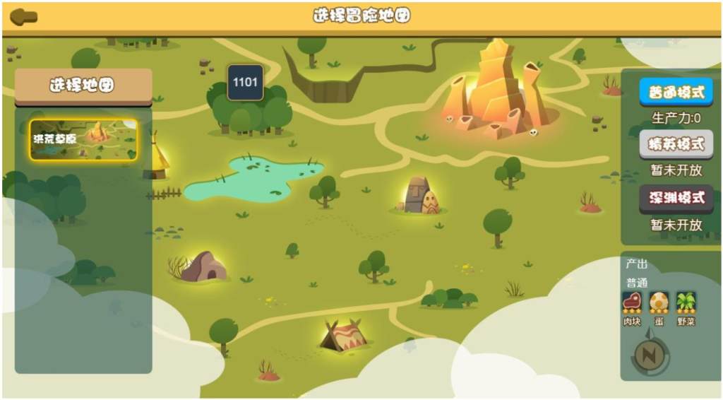 2.1 选择冒险地图,选择普通模式,右下角为该地图掉落的资源类型。