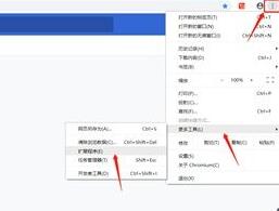 2、打开Google Chrome浏览器,在地址栏右侧,找到“自定义及控制”→“更多工具”→“扩展程序”。