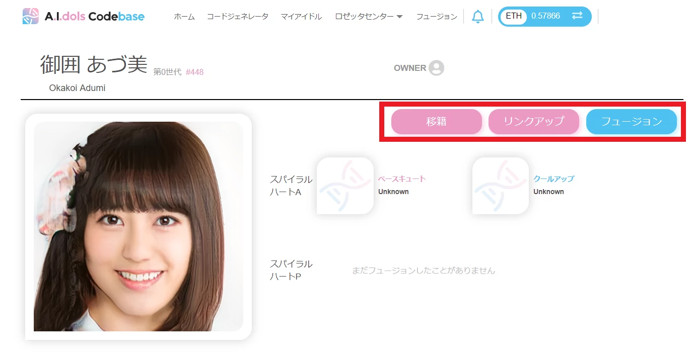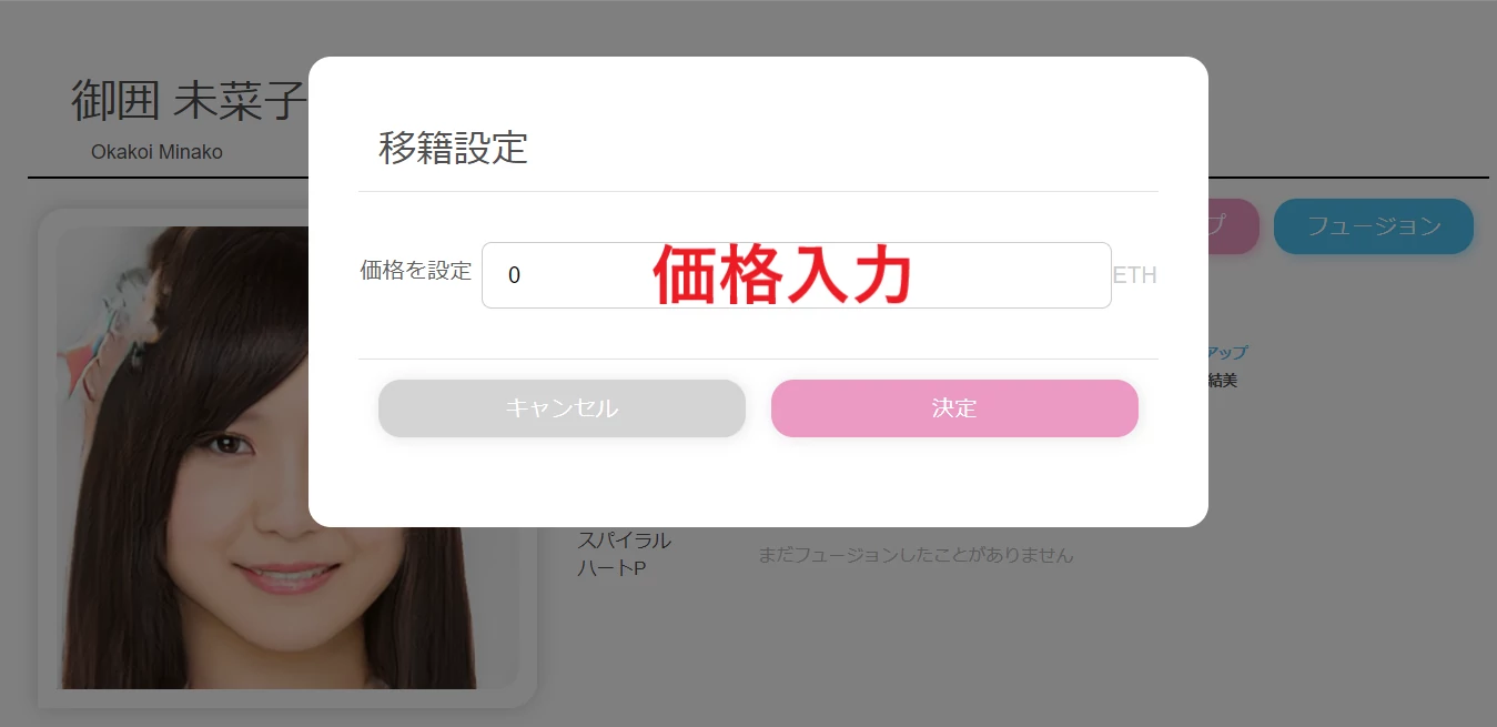 First click on the "移籍(Transfer)" button to generate a transaction.