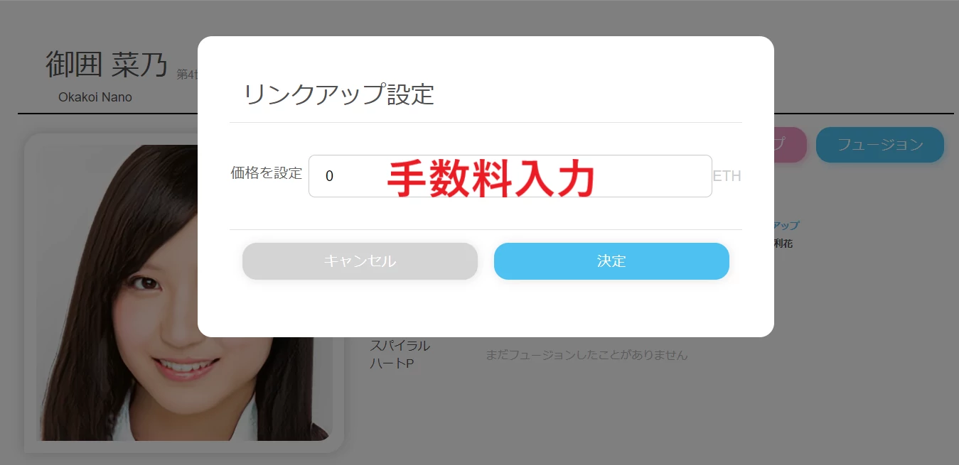 After the transaction is generated, click the button of "リンクアップ" again and set the commission. You can apply for the link again.