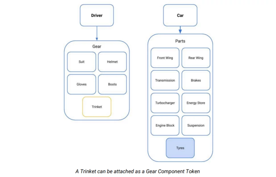 The ERC 721 is an NFT for game props and the like. In this case, it corresponds to the car, parts and driver in the game.