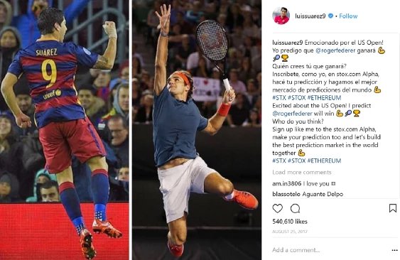 One of the best strikers in the world who plays for FC Barcelona and Uruguay’s national football team, apparently thinks that being paid for scoring goals is not enough. Luis Suarez now also wants to make money by predicting who wins a match. Uruguayan football star invited 25M of his followers on Instagram to join him in signing up to the Ethereum-based prediction market platform Stox and making their predictions for the US Open (yeah, Luis, we know that feeling — we too were super excited about the tournament!).
