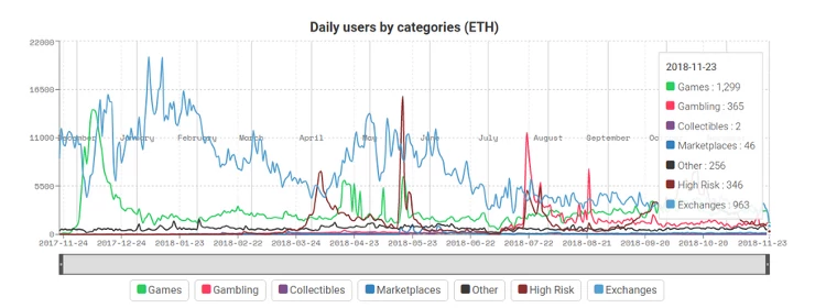 As you can see Games are a top category in terms of daily users. But you can see that there is no real adoption over last year. There are some fundamental limitations around blockchain games, which needs to solve first.