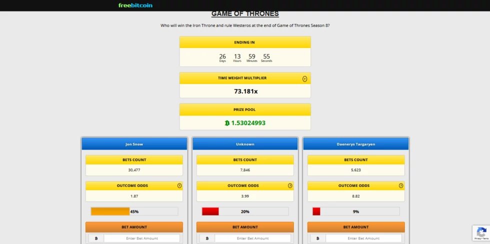 FreeBitco.in has launched a new betting feature on its website with a few events already listed. One of such events is based on Game of Thrones, the hit TV show from HBO.
