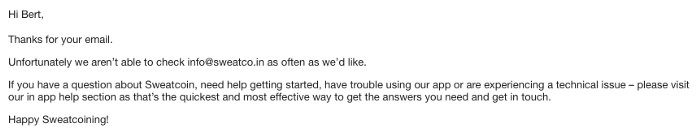 If these guys from Sweatcoin don’t cancel your subscription or change the rules later all is fine! Can we trust them? O yeah also, I want to advise you to read the subscription terms, but first you’ve got to find them somewhere. I’ve looked and e-mailed the team, but got this reply…