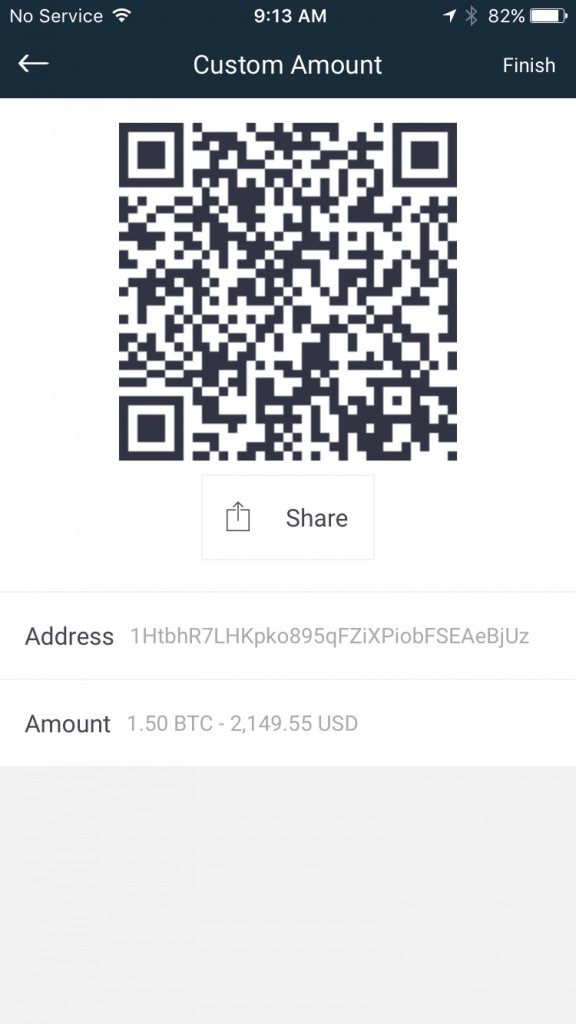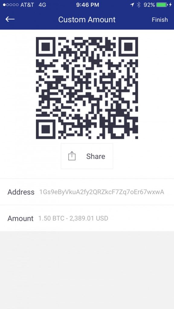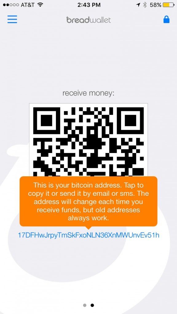 Simply open Blockchain on your iPhone, use the quick “Swipe to Receive” option and swipe left on your screen. The next page that shows your address, it should look like the screen below:
