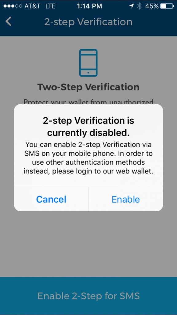 If you decide to enable 2-Step Verification, tap “Enable 2-Step”, the following a message box will pop up. Tap “Enable”.