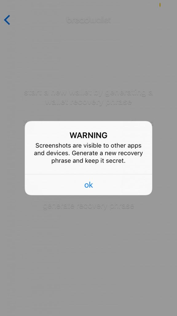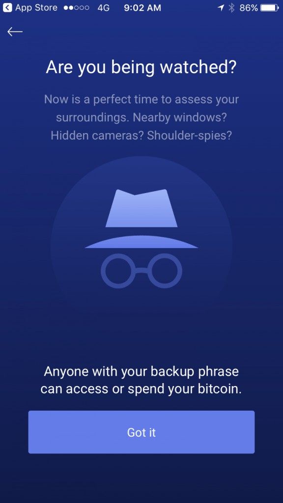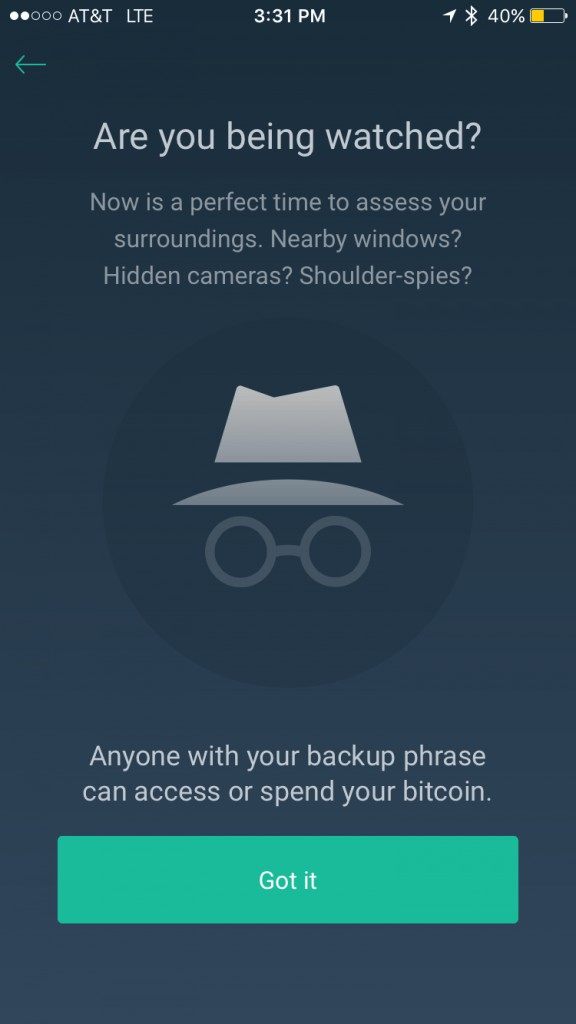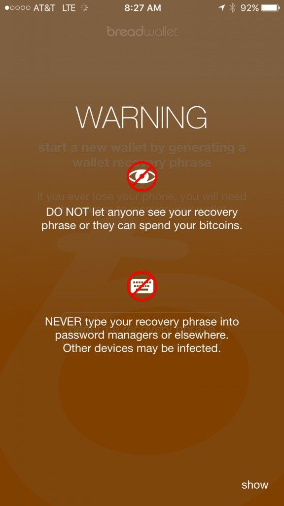 NOTE: Anyone with access to your Recovery Phrase has access to your wallet and bitcoins.