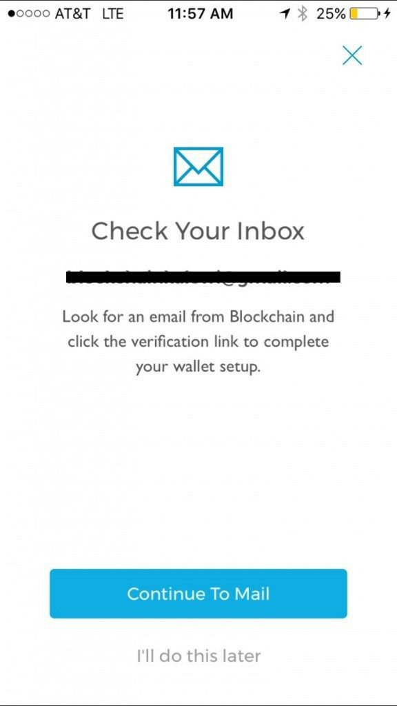 Next, Blockchain will ask you verify your email address. You should receive an email notification shortly after signing up for the wallet.