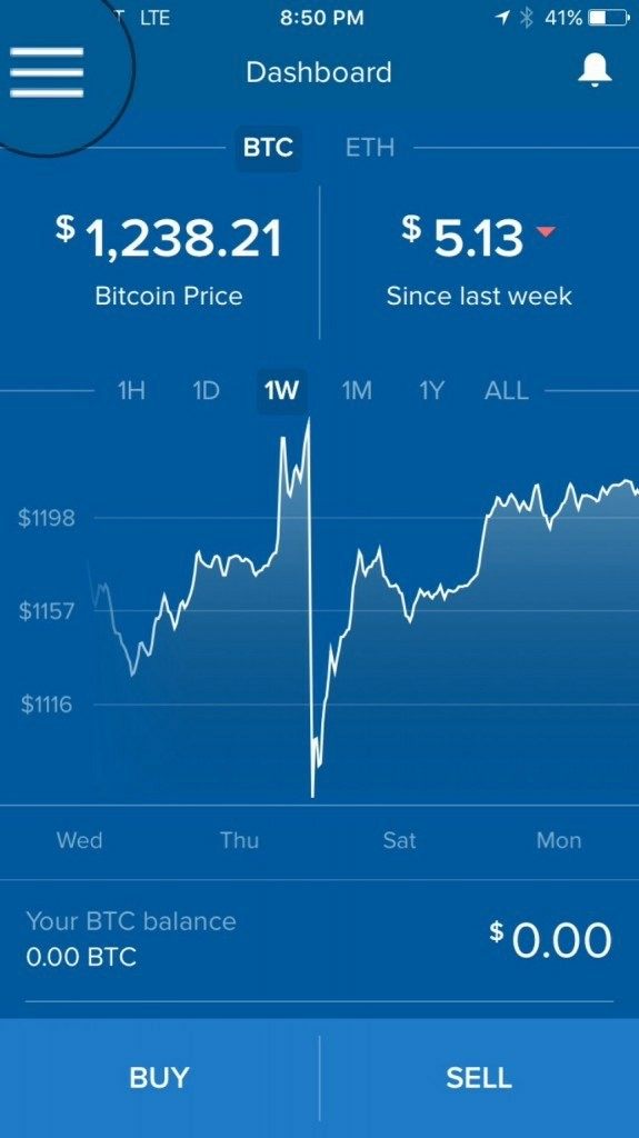 Next, tap the stacked horizontal lines in the upper left hand corner, this will open your wallet options tab.