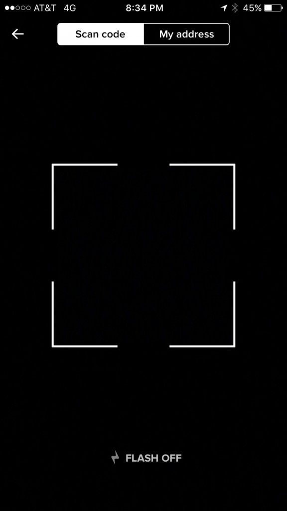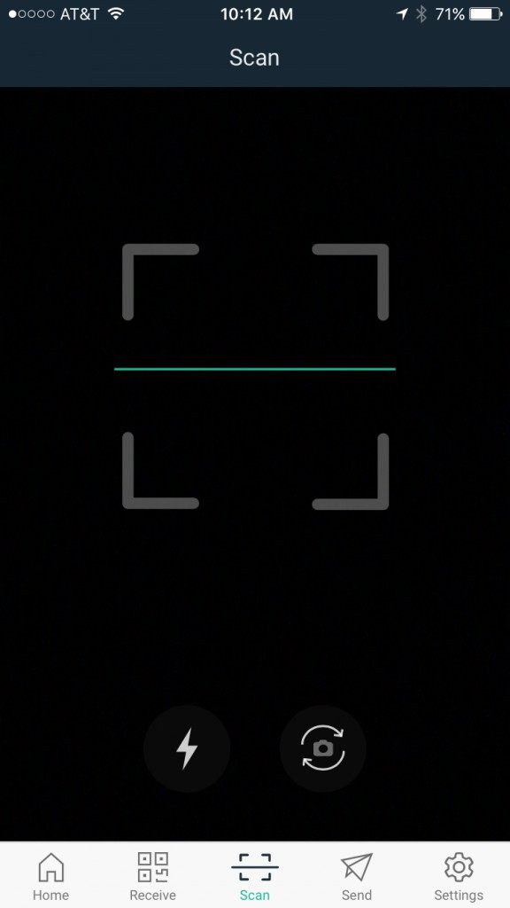 Or you can tap the QR code icon in the upper right hand corner, your screen will look like this: