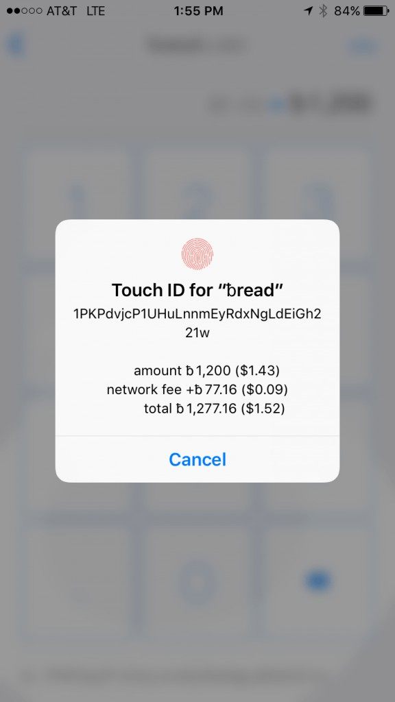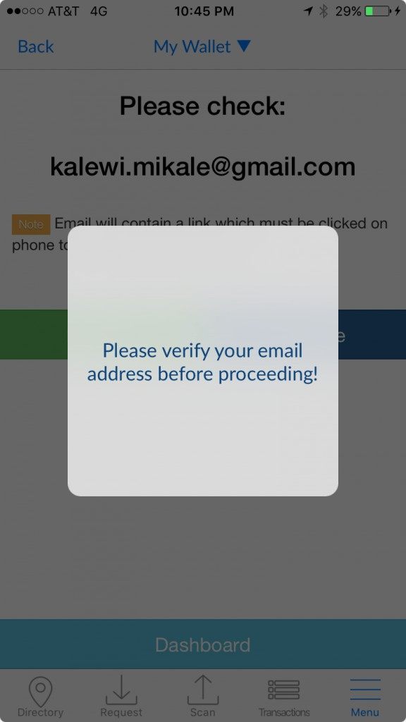 Airbitz conveniently allows quick login via Touch ID using your iPhone thumbprint as an extra layer of security; this can be found in the upper right hand corner. Access to Airbitz’s local Business Directory is available in the upper left hand corner.
