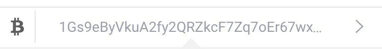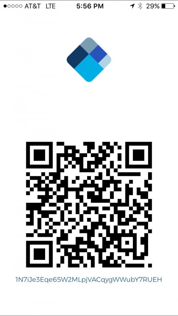 To quickly access your wallet address just swipe left. Both your scannable QR Code and wallet address will be displayed as shown below:
