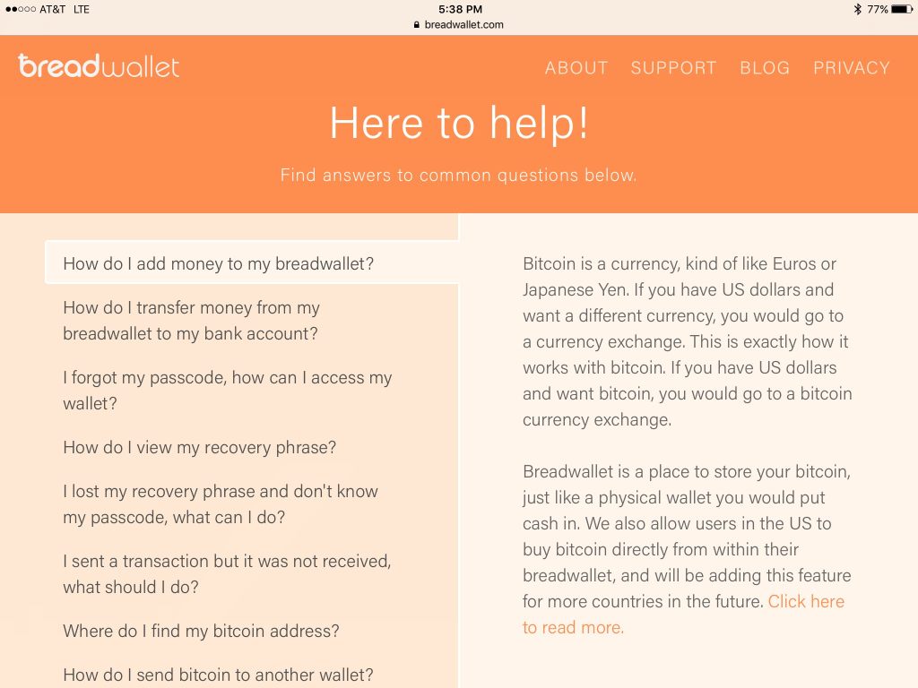 breadwallet primarily focuses on ease of use, security, and privacy. Private keys are stored in a hardware-encrypted-on-device-key, meaning breadwallet connects directly to the bitcoin network via a [simplified pa.