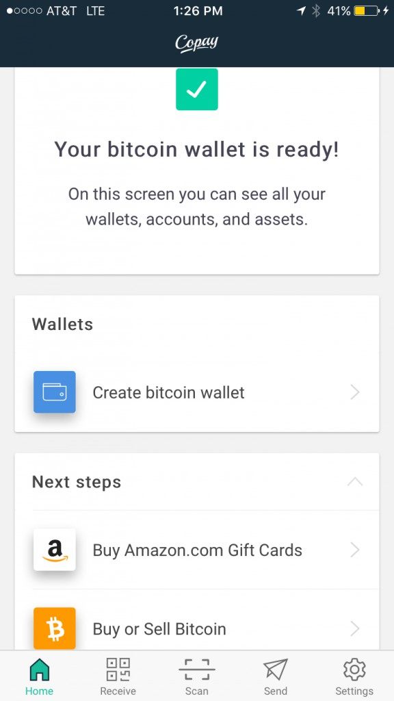 Congratulations, your Airbitz wallet and account have been created.