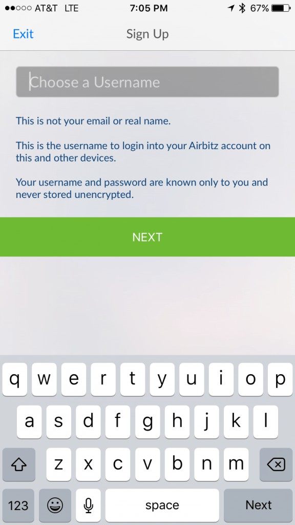 On the next screen, Airbitz will ask you to “Choose a Username”.