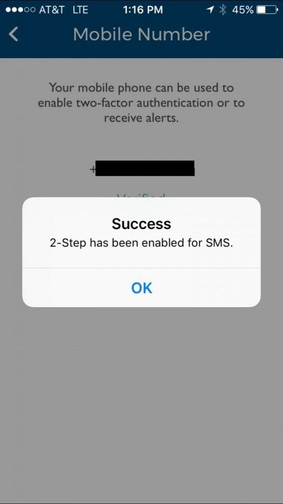 That’s it! You have successfully enabled 2-Step for SMS.
