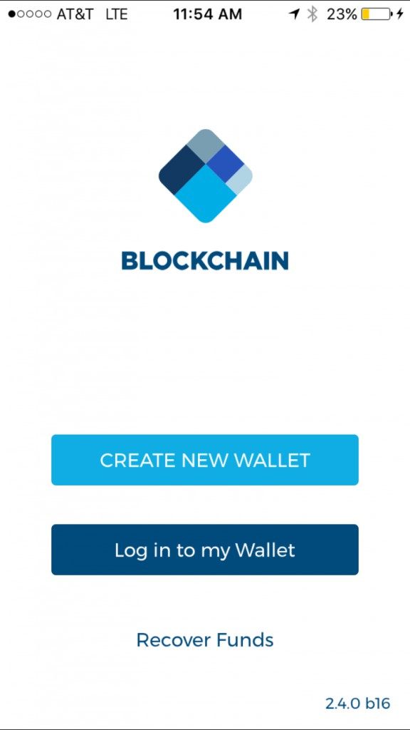 Once installed, open the app and select “CREATE NEW WALLET”. If you already have a wallet with Blockchain, just tap “ Log into my Wallet”, you should see a screen like the one below:
