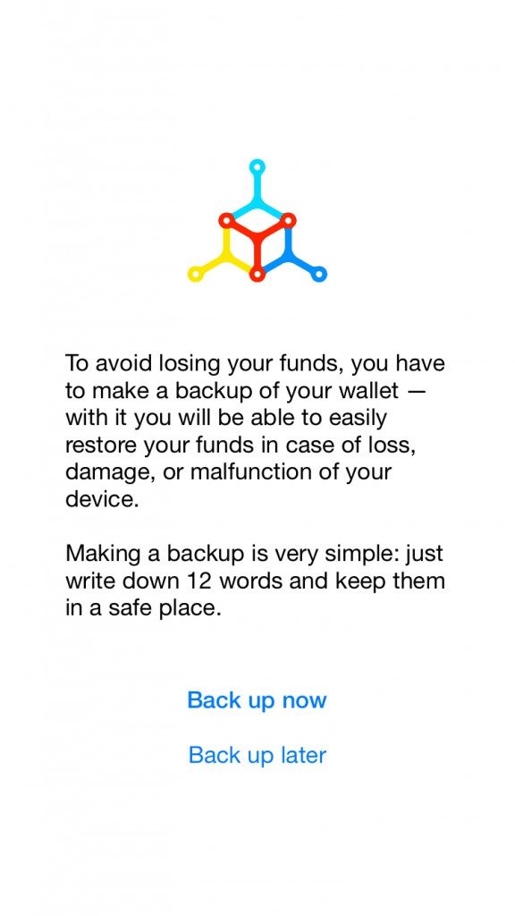 Even though we don’t recommend using Blockchain as your primary wallet, or to store a large amount of funds; you should back up your wallet as soon as you download it.