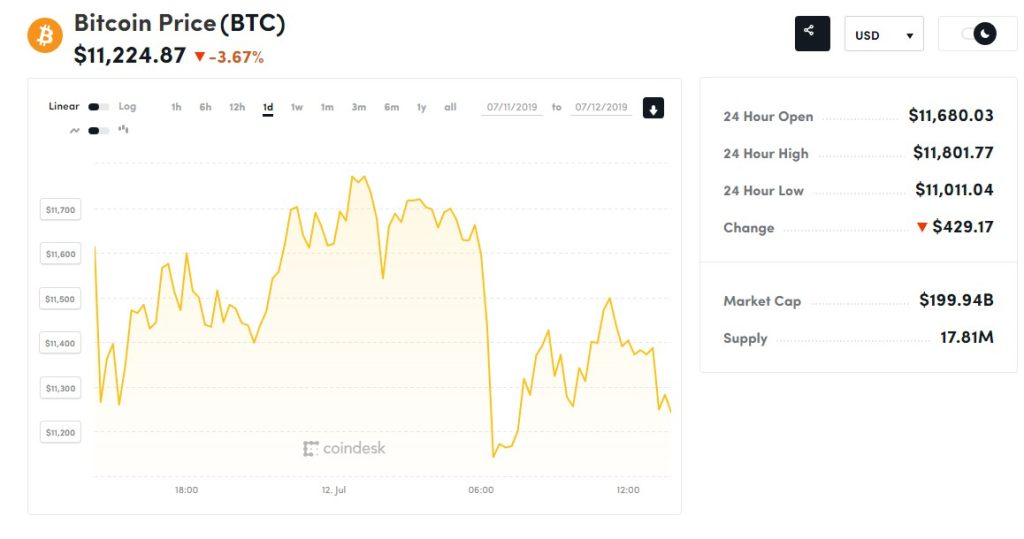 Having rose from a local low of $11,187 to $11,532 late evening on July 11, BTC was on the up moments before Trump’s tweets began.