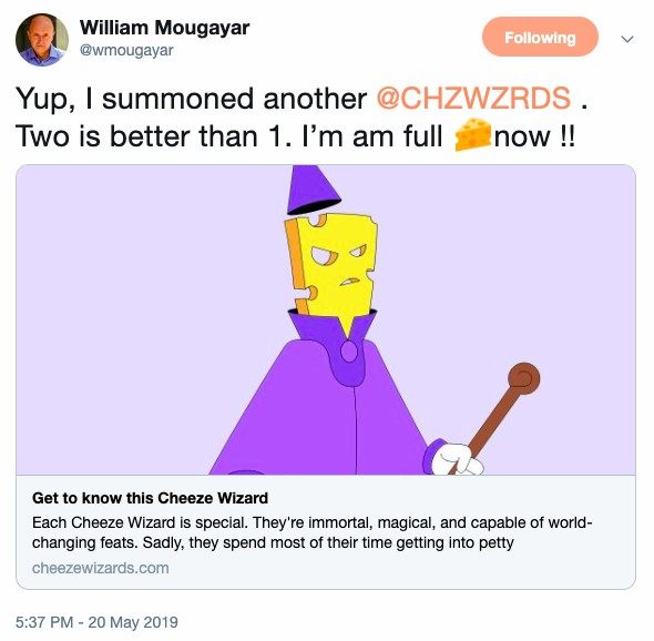According to their website, Cheeze Wizards is a tournament. Players have to summon wizards to compete and every wizard added to the population will increase the size of the Big Cheeze (the reward for players who’ll win the tournament).
