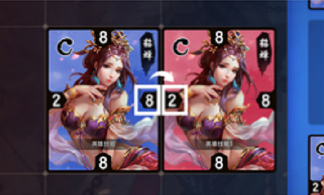 We can see that there are different numbers on each of the four sides of each card, once the cards of two sides are adjacent, the position battle will begin. If our card points are larger, we can change the enemy cards into our own colors and take them as positions. (Of course this does not affect the actual ownership of the card.) It should be noted that when you are on the offensive side (your card round), if your points are smaller, the round attack fails and you cannot change the color of the opponent card, but our position will not be captured by the enemy, and the card color will not change.