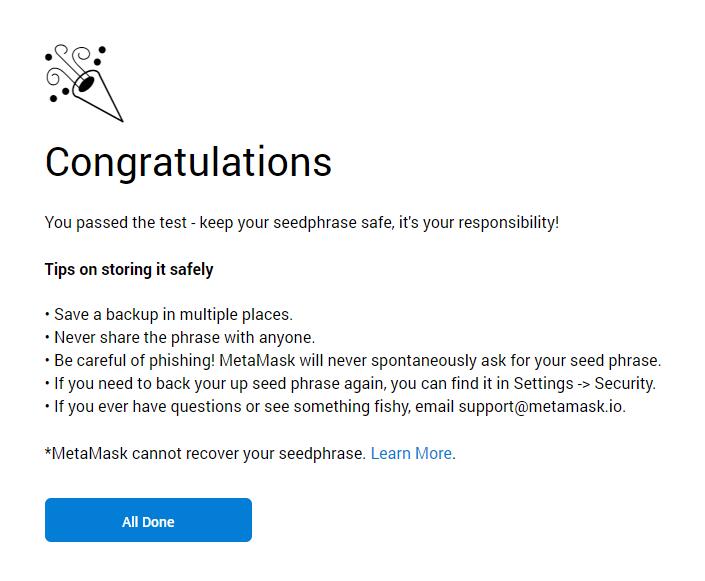 4. After setting up your password, it will jump to the following page.Please make sure you have checked and followed their tips, it's quite important for your account: