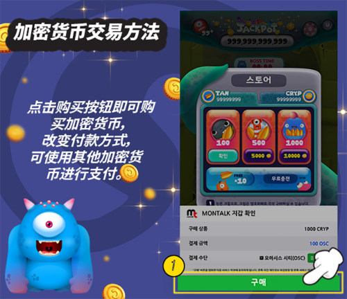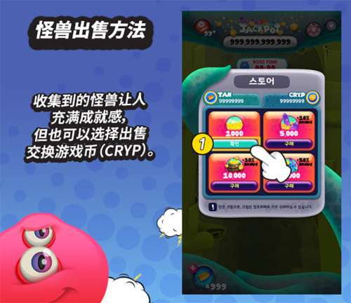 区块链游戏《CryptoMon》是一款多人触屏点击休闲手游,玩家通过触摸屏幕寻找可爱的怪物。点击怪物便会对其射出子弹并进行捕捉。 怪物的价值随着子弹的累积而上升,成功捕获怪物的玩家将获得其所有累积价值。 获得的怪物可以用来回购子弹,也可以通过交易和销售兑换成加密货币。 此外,随着子弹的不断累积,Boss怪物出现在视线中的机会也在增加。与普通怪物相比,boss更贵也更难捕捉哦。