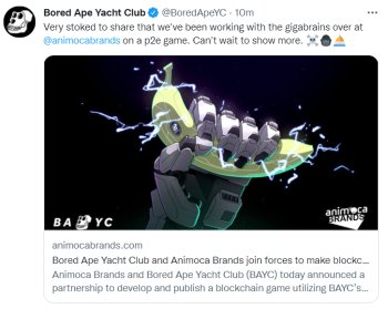 BAYC将与Animoca Brands合作发布NFT P2E区块链游戏!
