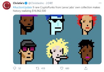 经典区块链游戏《CryptoPunk》最新NFT拍卖成交价高达上亿元!