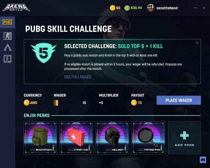 テストユーザーは無料で10枚の金貨を受け取ります、その後購入必要があるです。 ゲームを開始するには、Arena Marchで基本情報と「PUBG」のユーザー名をArena Marchに提供する必要があります。プラットフォームは、有名なPCアプリストアOverwolfからダウンロードできます。