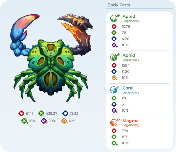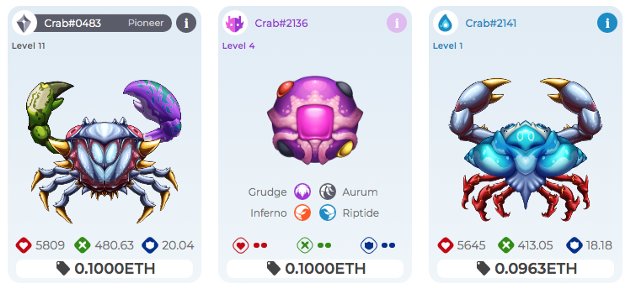 4つの角すべてが点灯しているカニは、ステータスのバランスを受け取ります。これにより、同じ種類を共有したり、パーツを共有したりするにもかかわらず、すべてのカニがユニークになります(それ自体はまれなケースです)。