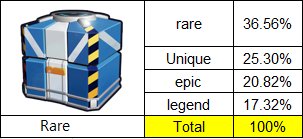 各ボックスにおけるランク別アイテムの獲得確率につきましては、以下の表をご参考ください。