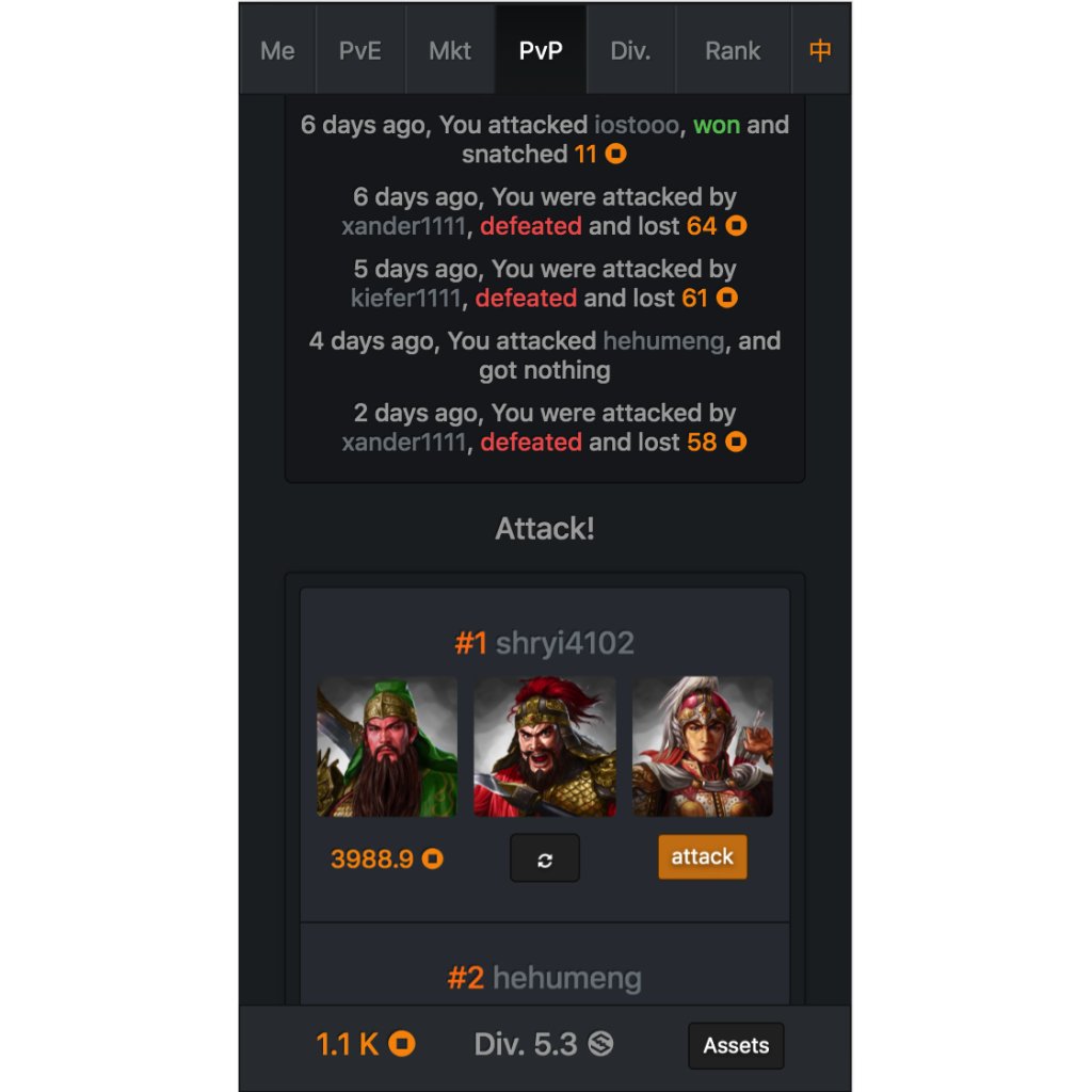 - 嘘はつかない。ホワイトペーパーだけでお金を集めようとする他のプロジェクトをたくさん見たことがあると思いますが、「Crypto Sanguo」は違います。現在までに、ゲームの開発に8か月を費やして、2回のテストも行われました。フィードバックをいただいた何百人ものユーザーのおかげで、過去数週間でバグを修正し、非常に高速に繰り返すことができました。短期的には、生産性を向上させ、新しいリリースをさらに増やしていきます。