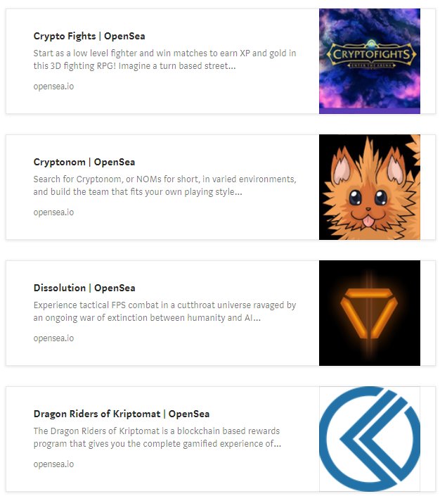 ERC-1155発表の前でさえ、メインネットERC-1155契約を使用したOpenSeaにはすでに17のゲームがあり、多くはすでにボリュームによって上位15のdappsにランクされています。ランクは以下の通りです。
