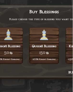 祝福は対戦の左右には重要な補正です。司教祝福・女王祝福・国王祝福っていう3つ分けています。司教はバッジの能力値10%をアップできます。女王20%、国王50%。